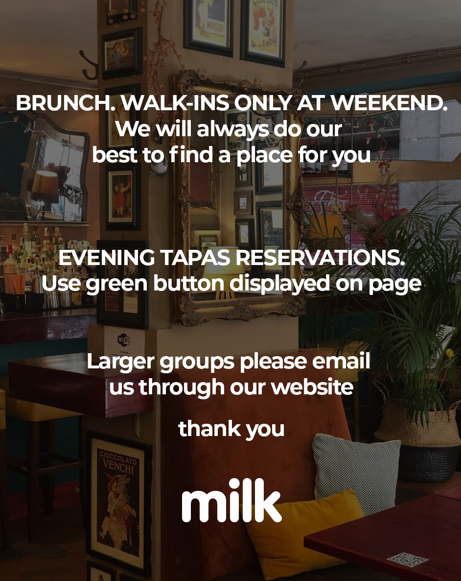 Rebecca and I hope that you all find Milk a great meeting place to start an unforgettable vacation in this incredible city. Please take a look at our extended family of eateries (GiGi von tapas and Firebug) and once again welcome to Barsssselona!